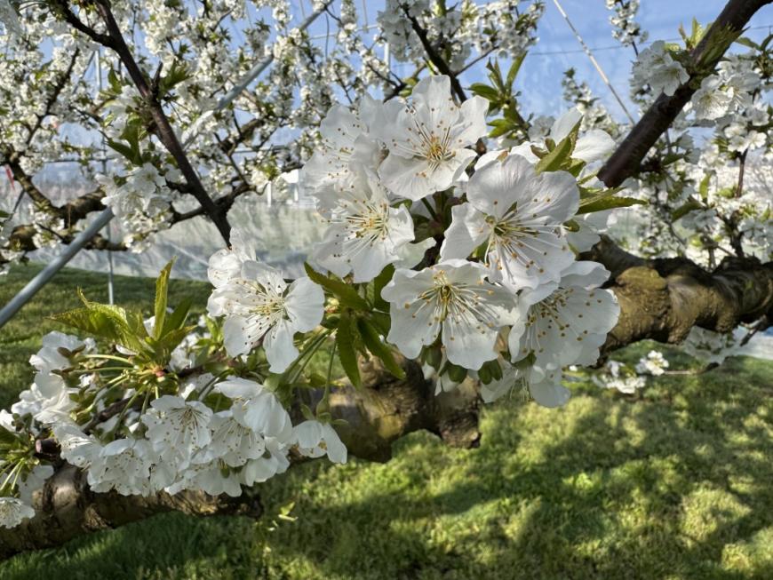 ・園芸農業研究所のさくらんぼ「やまがた紅王」、「紅秀峰」は4月21日に満開となりました。