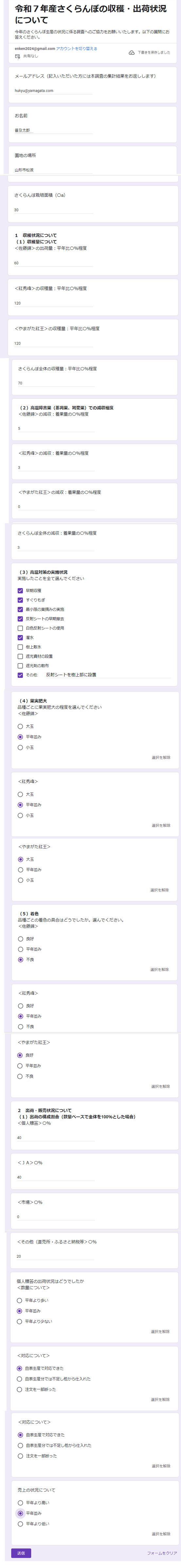 ホーム > 作物別情報 > 果樹 > 果樹「生育状況と技術対策」 > 令和7年産さくらんぼの収穫・出荷状況調査の協力のお願い
